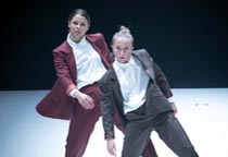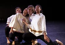 Izvođačice se bace u suludi, brutalni pas de quatre, jednosatno fizičko iscrpljivanje; sudare tijela, guranja i podržavanja, krajnje nepravilnih, neprovjerenih i neartikuliranih traženja uporišta i oslonaca na tuđem tijelu u svim mogućim pozicijama i zonama, i – zagrljaji: iskreni, nasušno potrebni kao fizički predah i međusobni priziv energetskih zaliha ...pročitajte cijeli tekst...