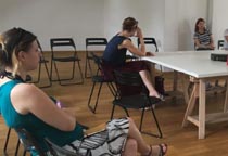 U trenutku kada Duško Šibl ustane i odlazi do štafelaja postavljenog u jednom kutu pozornice, plesači intenzivnije ispunjavaju prostor improvizirajući, a slikar odlučnim potezima kista kreće nizati jednu po jednu skicu. Nakon svake skice Šibl trga stranice bloka i kreće iznova. Skice ne samo što slijede linije tijela, nego prvenstveno njihovu energiju ...pročitajte cijeli tekst...