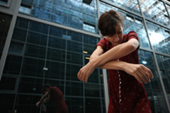 Plesačice jedna po jedna izvode solo, koji koreografski izlazi iz njihovog tijela i pokreta, te se doima čvrsto strukturiranom i fiksiranom improvizacijom. Zrinka Šimičić kreće iz unutarnjeg pokreta torza i ulazi u prostor apstraktnim pokretom, Roberta Milevoj pleše brzo, skakutavo i eksplozivno, dok romantična Silvia Marchig u dugačkoj crvenoj haljini, nježnim gestama i dubokim iskoracima, kao da priziva Carolyn Carlson. Kada otplešu svoj dio, jednostavno iziđu sa scene. Nema interakcije niti daljnjeg razvoja. A diskretno autorstvo Irme Omerzo vidljivo je u točnom osjećaju za repeticiju i tajming, te svakoj plesačici ostavlja samo ono esencijalno, koje tako precizirano, rezonira i moćno i začudno.